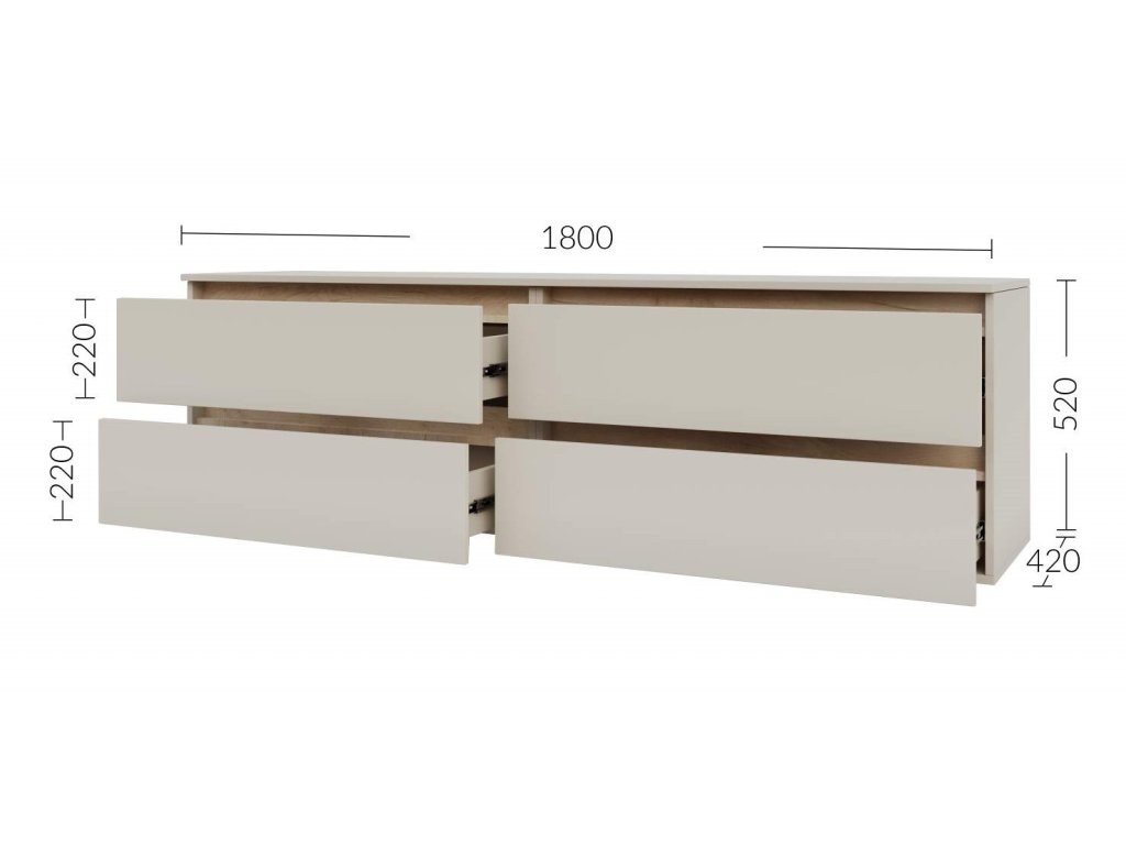 - Rozměry: šířka 180 cm, výška 52 cm, hloubka 42 cm