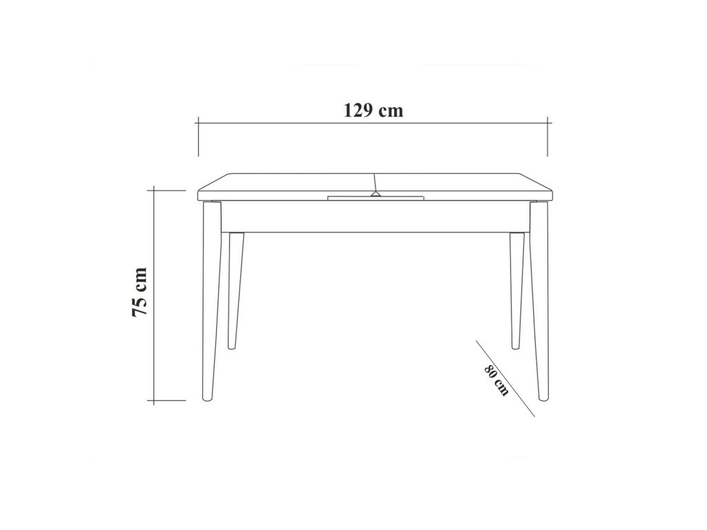 - Rozměry jídelního stolu: Šířka: 129 cm, Výška: 75 cm, Hloubka: 80 cm (1 kus)