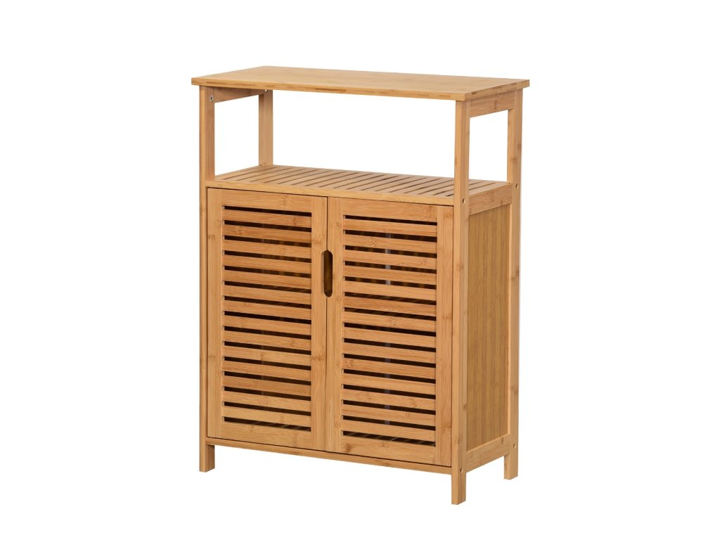 S touto bambusovou skříňkou LINDA 2D vytvoříte praktický úložný prostor pro vaše koupelnové předměty. Vizuálně zaujme koupelnová komoda svým přírodním vzhledem, který skvěle ozvláštní každou koupelnu. Tato koupelnová skříňka je vyrobena z vysoce kvalitního bambusu s voděodolnou lakovou úpravou, která se jen tak lehce nezdeformuje a může Vám sloužit dlouhá léta. Lamelová konstrukce navíc pomáhá zajistit dobrou cirkulaci vzduchu uvnitř skříňky.