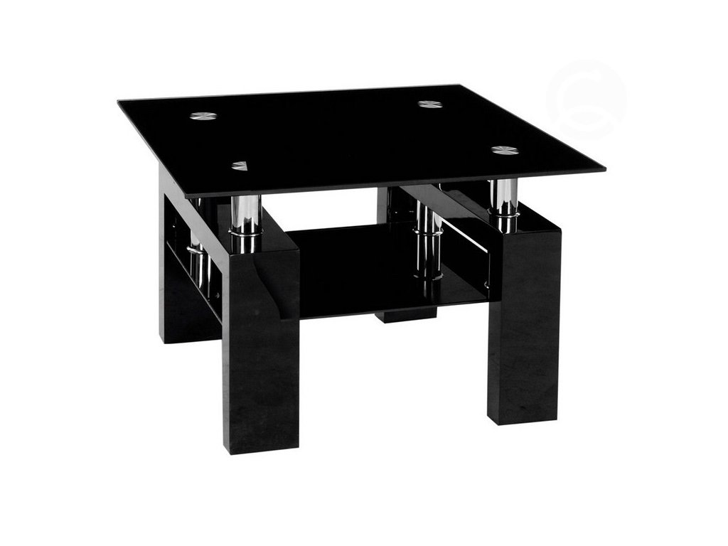 Konferenční stolek LISA D černý. Stylový konferenční stolek s deskou z tvrzeného skla a nožičkami z MDF materiálu. Černé provedení rozjasňují chromové části. Určitě oceníte odkládací poličku pod vrchní deskou, která je z černého skla. Jednoduchý moderní design stolku LISA D je vhodný do obývacího pokoje či kanceláře. Stolek LISA D má rozměry (v/š/h) 55 x 60 x 60 cm.Doplňkové parametry