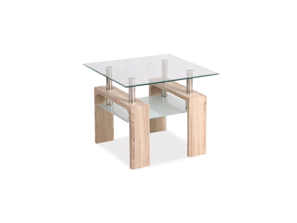 Konferenční stolek LISA je atraktivní a elegantní skleněný stolek. Je vhodný do různých typů interiérů. Vrchní sklo i police jsou vyrobeny z tvrzeného skla. Nohy jsou vyrobeny z MDF. Konferenční stolek je v barevném provedení: dub sonoma. Rozměry (š,v,h): 60 x 55 x 60 cm.Stolek LISA je v nabídce ve více provedeních.Dodáváme v demontovaném stavu.Doplňkové parametry