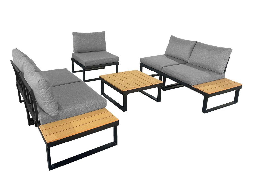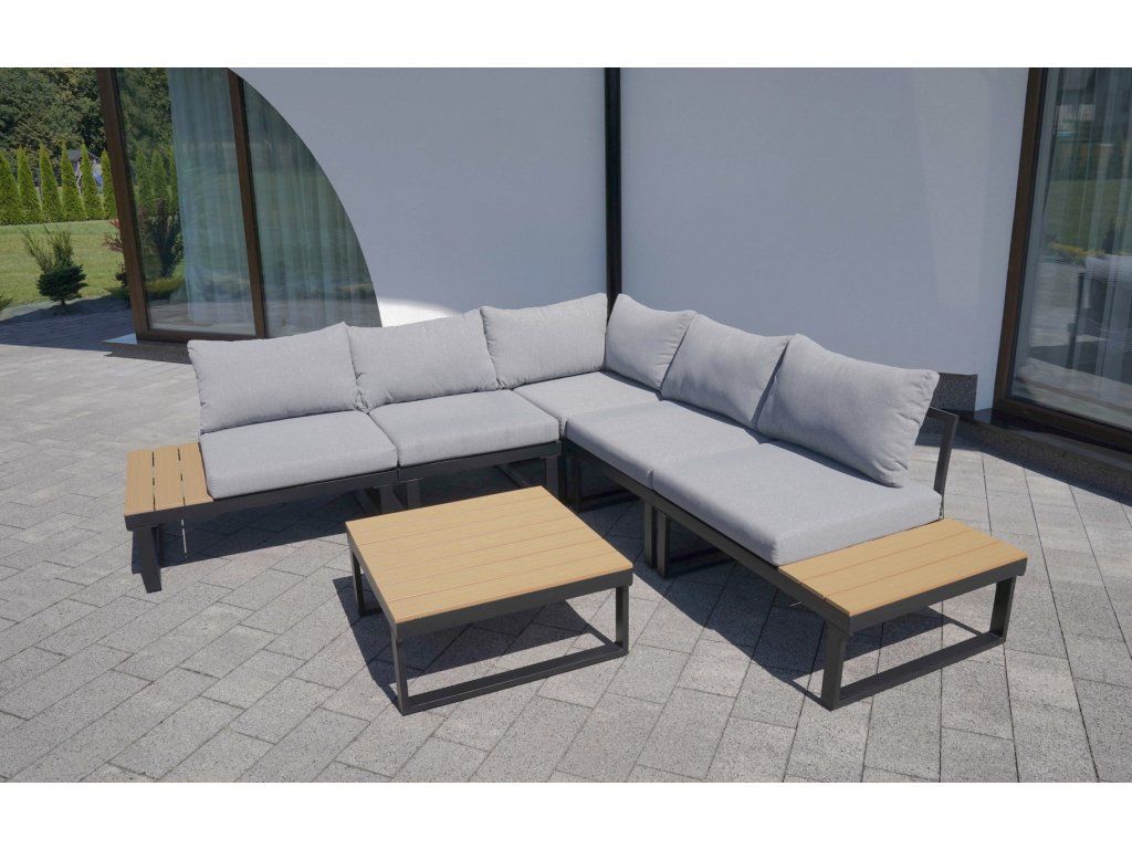LISABON zahradní rohová modulová sedací souprava, popel/teak