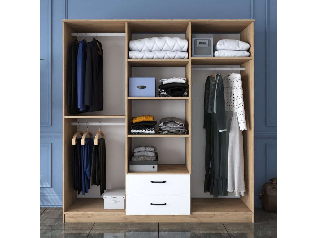 Šatní skříň LITER je navržena tak, aby splňovala všechny vaše potřeby. Nabízí dostatek úložného prostoru pro vaše oblečení a doplňky a zároveň přidává ložnici moderní a stylový vzhled.