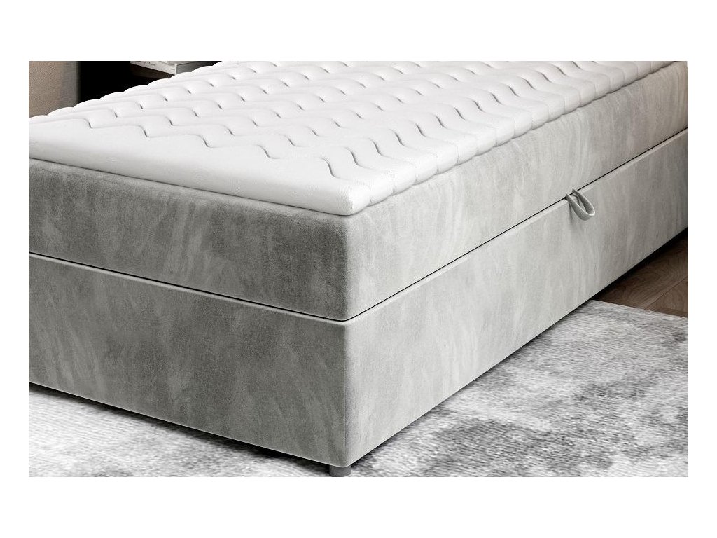 Plocha lůžka 90 x 200 cm, výplň Bonnell a T25 pěna zaručují zdravý spánek, neboť tento typ matrace podporuje tělo ve správné poloze během odpočinku. Přestože postel působí minimalisticky a kompaktně, má prostorný kontejner na lůžkoviny s látkovým madlem, masivní spodní rám. Mezi další poznávací znaky patří 53 cm vysoký sedák a 3 cm nohy.