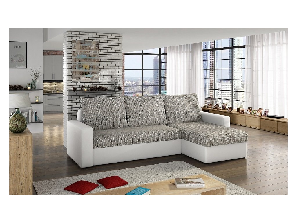Rozkládací rohová sedačka LIVING 17 se řadí mezi jednoduché sedačky do menších prostor. Sedačka je moderním a designovým prvkem a je vhodným řešením pro každou moderní domácnost s menším obývacím prostorem. Vyrobena je z PUR pěny, která je díky svým vlastnostem velmi oblíbená. Je potažena tkaninou Berlin 01 šedé barvy a Soft 11 ekokůže bílé barvy, která se vyznačuje svojí měkkostí a jemným odleskem. Disponuje úložným prostorem. Sedačka má univerzální provedení rohu. VIDEO s ukázkou rozkladu sedačky LIVING a otevření úložného prostoru sedačky si můžete prohlédnout ZDE. V nabídce je několik barevných provedení.