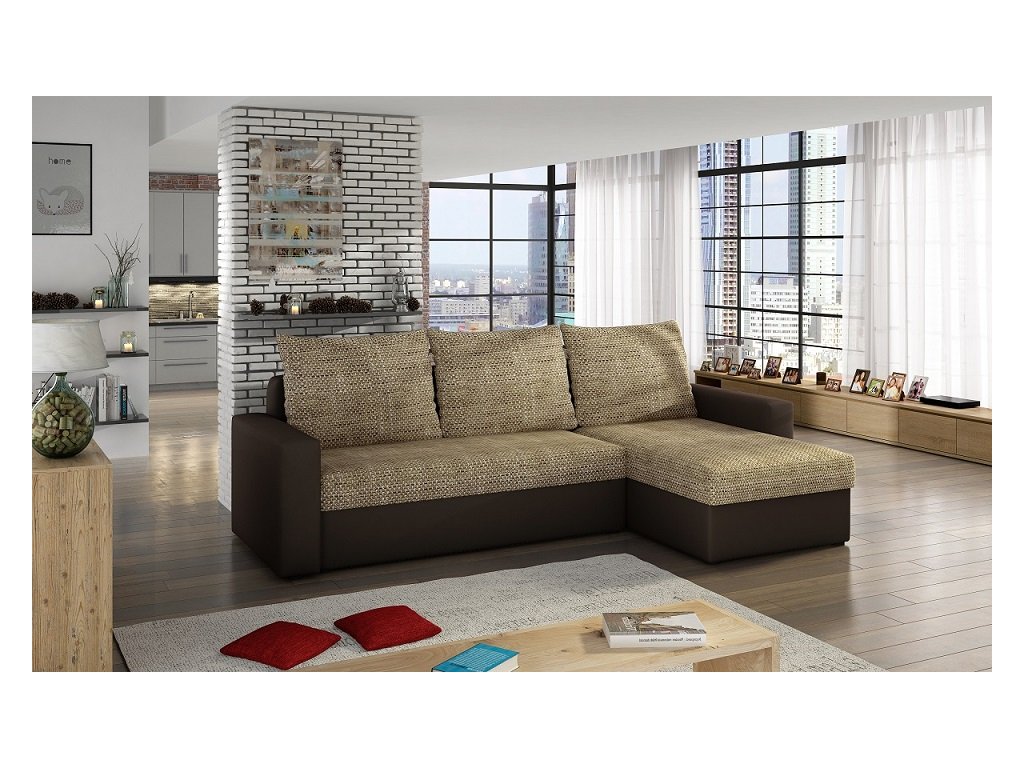 Rozkládací rohová sedačka LIVING 19 se řadí mezi jednoduché sedačky do menších prostor. Sedačka je moderním a designovým prvkem a je vhodným řešením pro každou moderní domácnost s menším obývacím prostorem. Vyrobena je z PUR pěny, která je díky svým vlastnostem velmi oblíbená. Je potažena tkaninou Berlin 03 hnědé barvy a Soft 66 ekokůže tmavě hnědé barvy, která se vyznačuje svou měkkostí a jemným odleskem. Disponuje úložným prostorem. Sedačka má univerzální provedení rohu. VIDEO s ukázkou rozkladu sedačky LIVING a otevření úložného prostoru sedačky si můžete prohlédnout ZDE. V nabídce je několik barevných provedení.