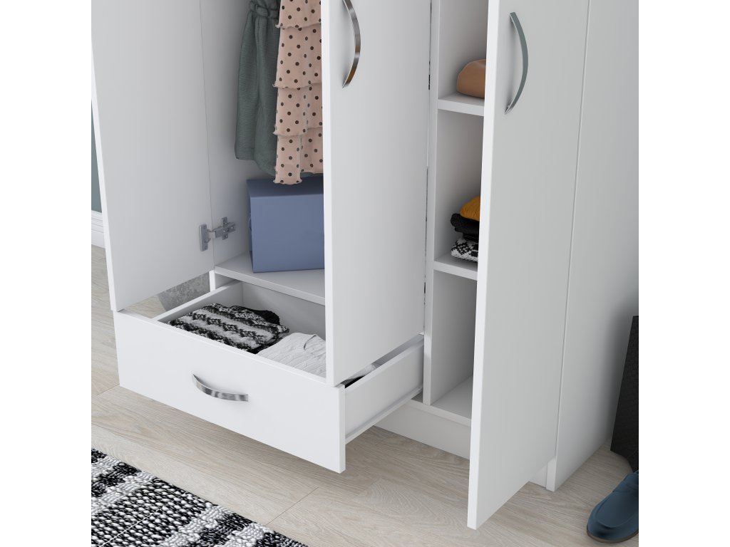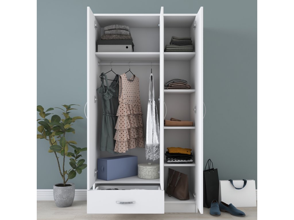 Šatní skříň LOIS je ideálním řešením pro moderní a funkční ložnici. Její minimalistický skandinávský design v čistě bílé barvě přináší do prostoru eleganci a praktičnost. Díky promyšlenému vnitřnímu uspořádání nabízí dostatek úložného prostoru pro oblečení i doplňky.