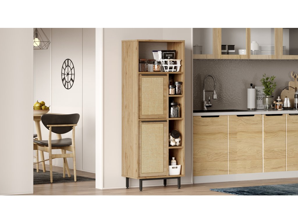 LONNY 10 vysoká skříňka na mikrovlnku, sepet/jutový vzor