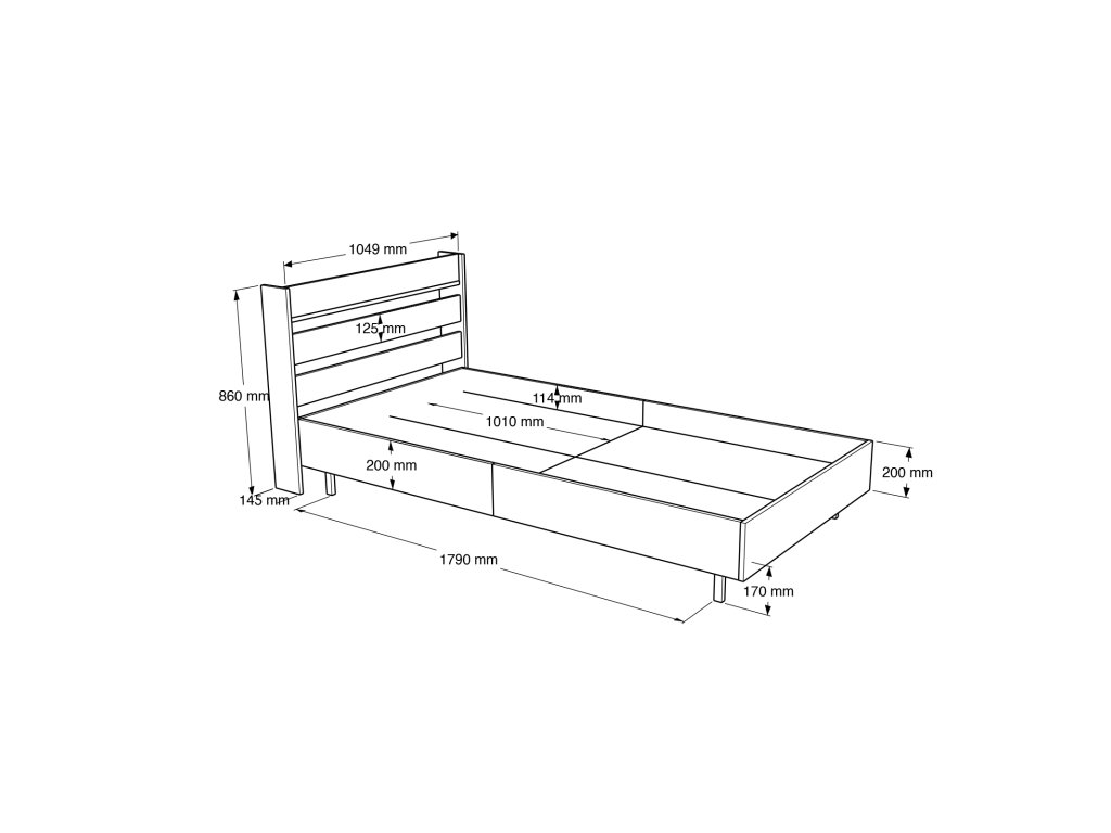 - Spací plocha: 100 x 200 cm