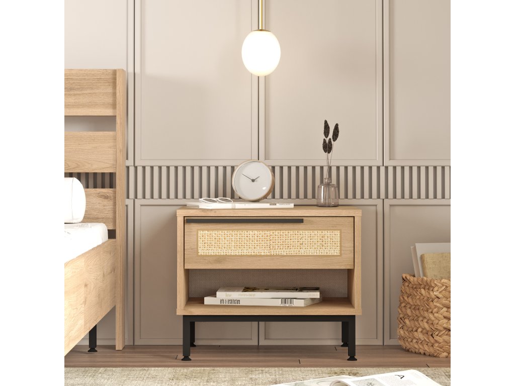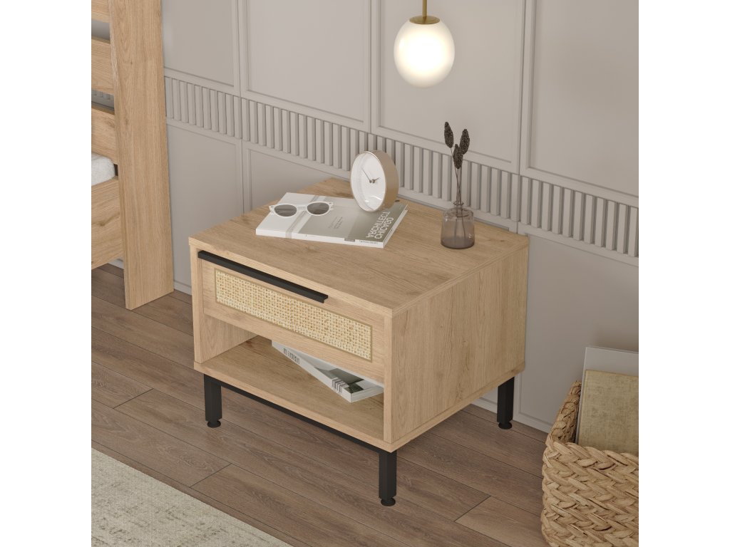 LONNY 14 noční stolek se šuplíkem, sepet/jutový vzor