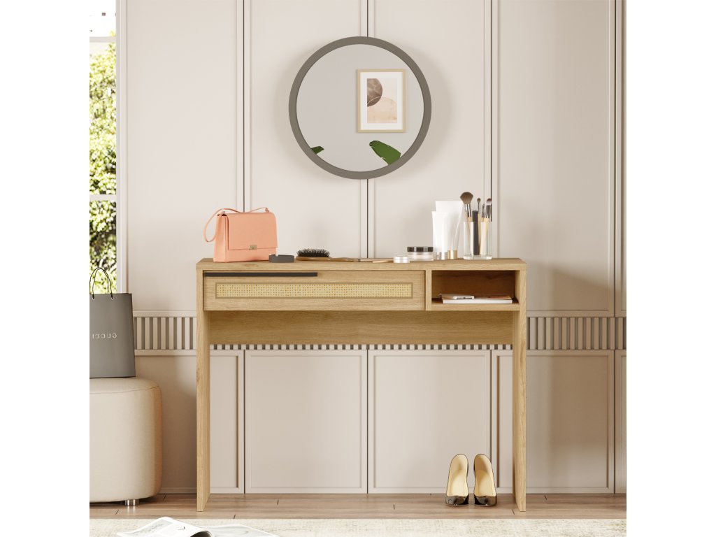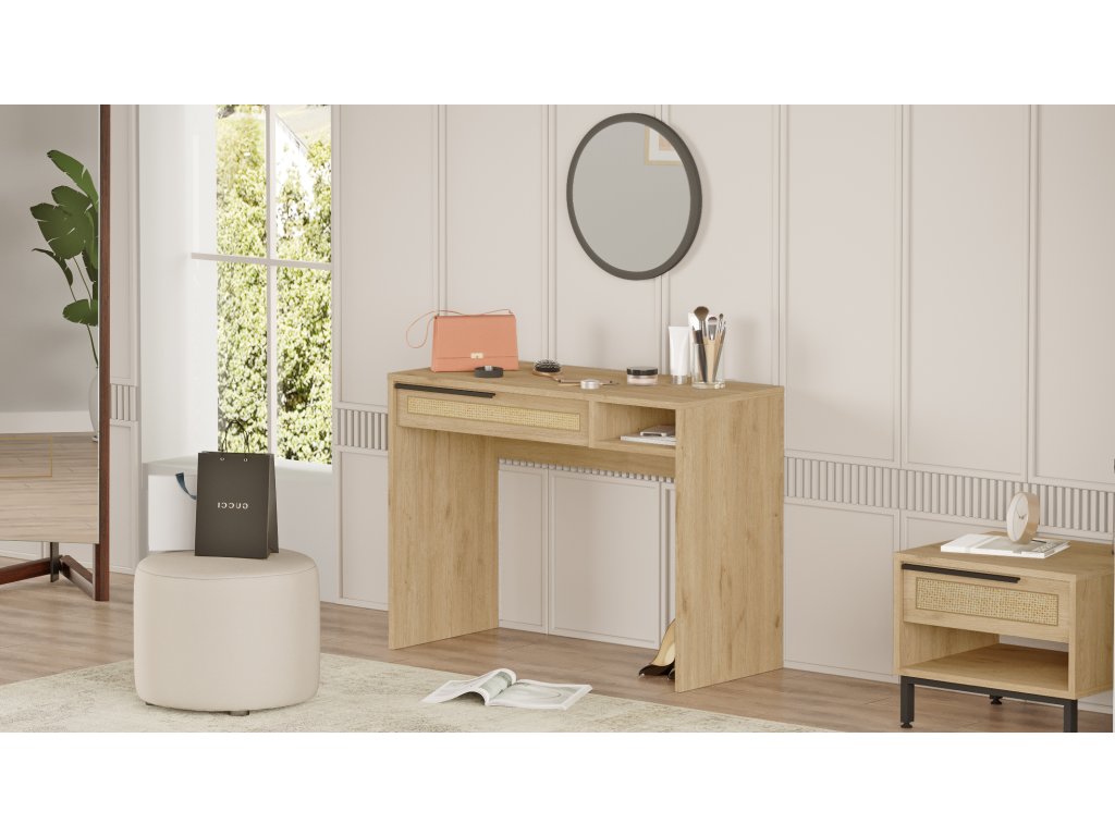LONNY 18 toaletní stolek se zrcadlem, sepet/jutový vzor