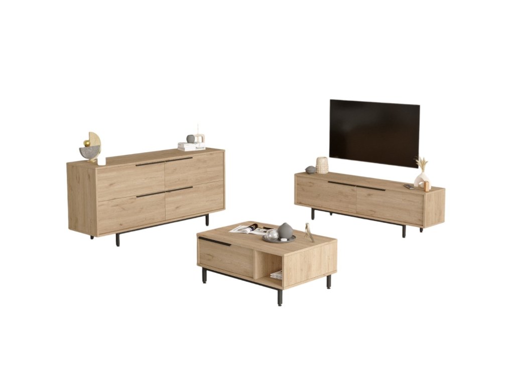 | Sestava obsahuje: | televizní stolek 160x35,5x45,1cm, konferenční stolek 90x60x37,6cm, komoda 160x44,5x74,3cm |