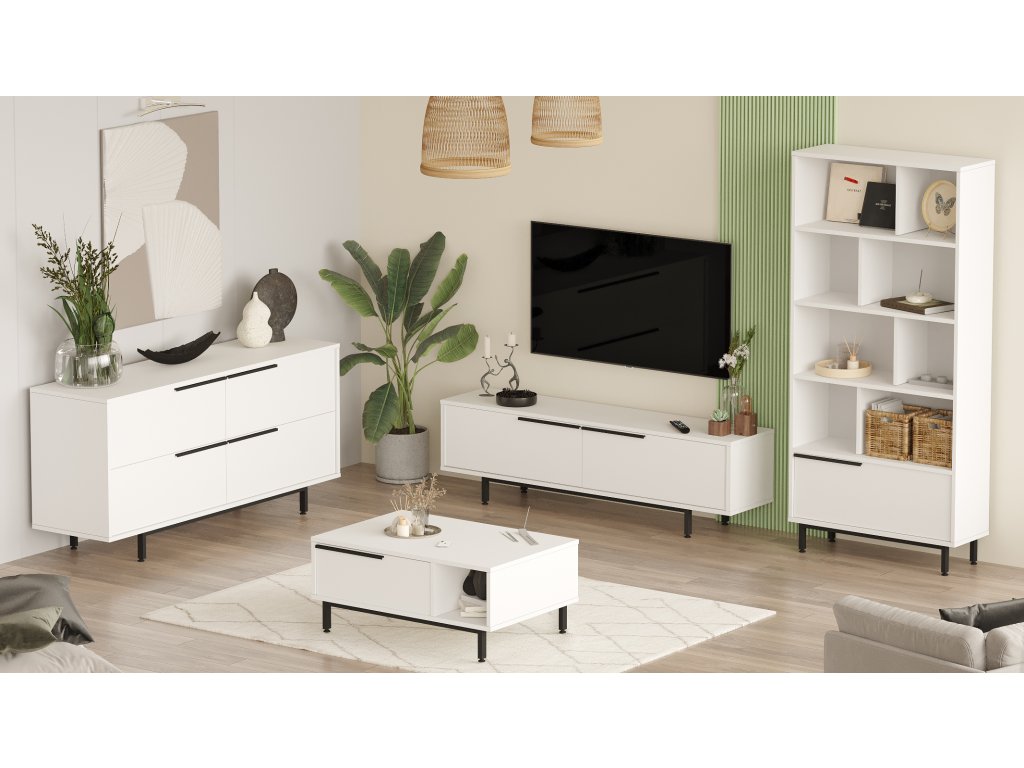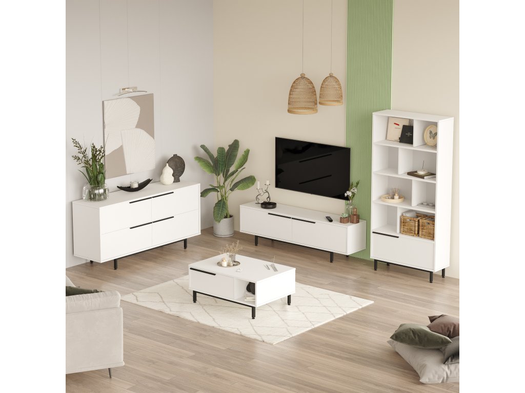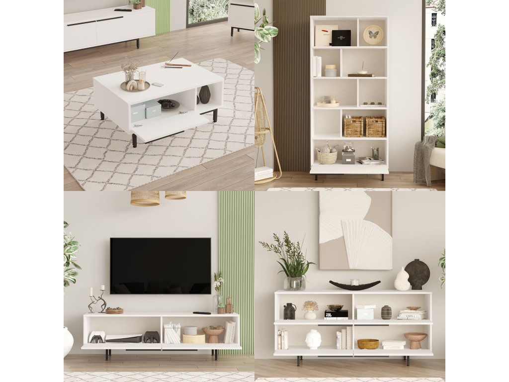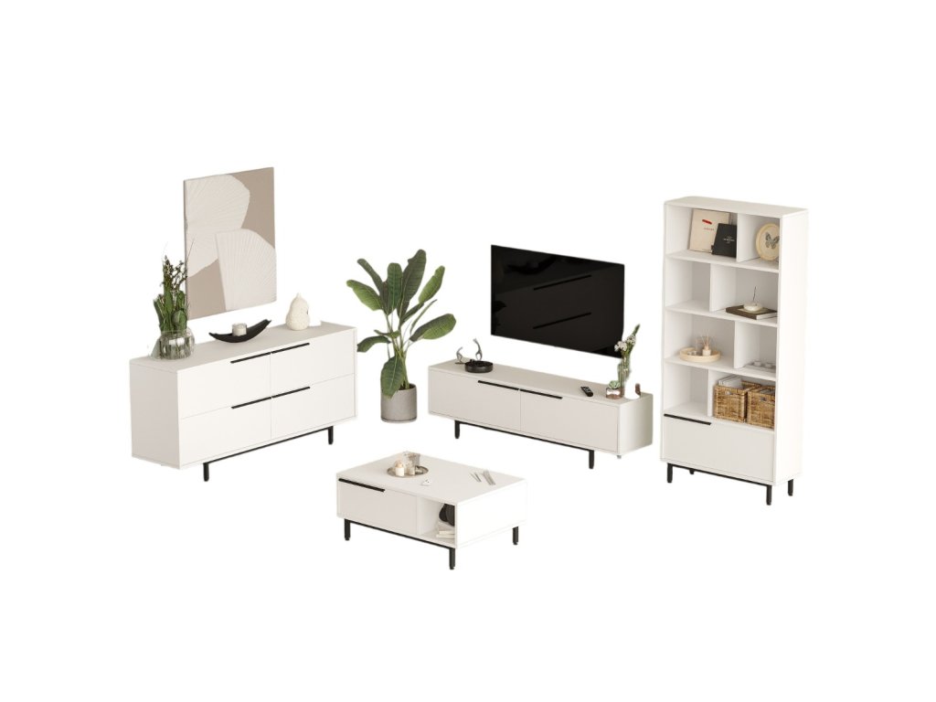 | Sestava obsahuje: | televizní stolek 160x35,5x45,1cm, konferenční stolek 90x60x37,6cm, komoda 160x44,5x74,3cm, knihovna 83,9x29,5x175,6cm |