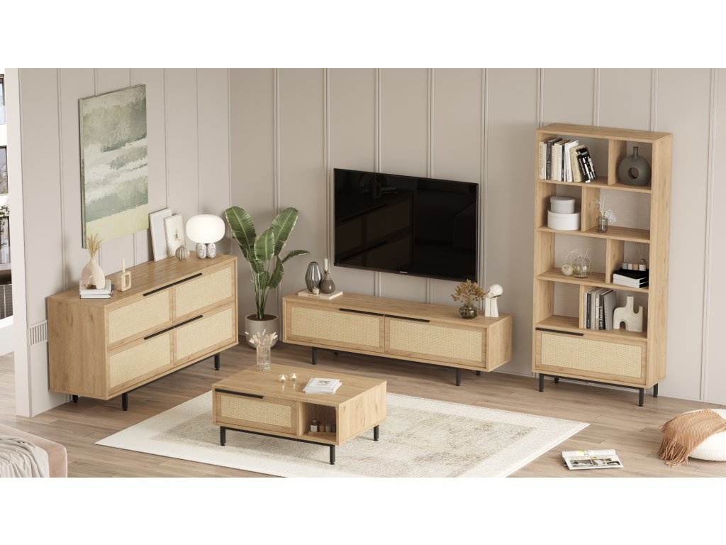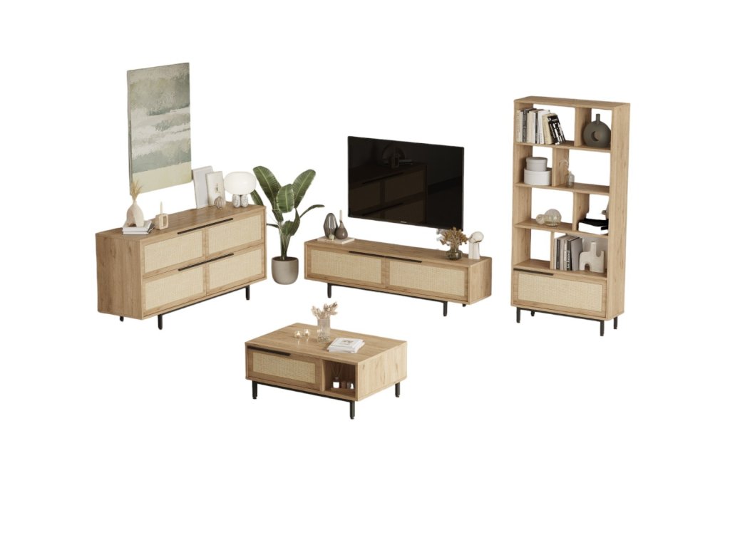 | Sestava obsahuje: | televizní stolek 160x35,5x45,1cm, konferenční stolek 90x60x37,6cm, komoda 160x44,5x74,3cm, knihovna 83,9x29,5x175,6cm |