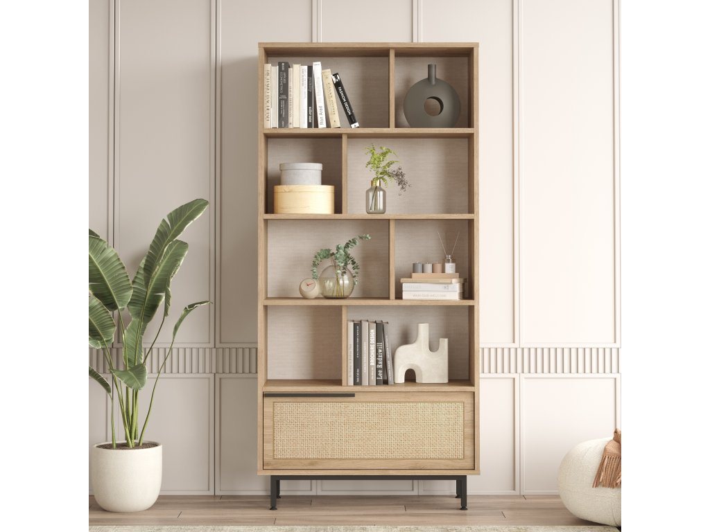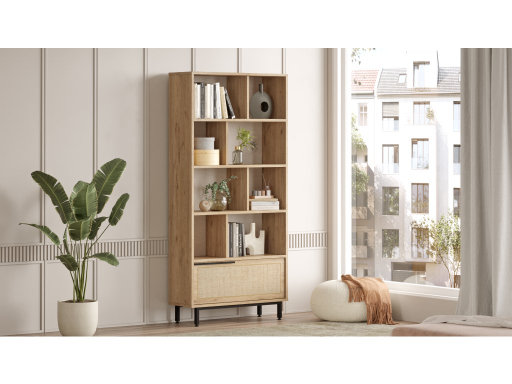 LONNY 4 regál se skříňkou, sepet/jutový vzor