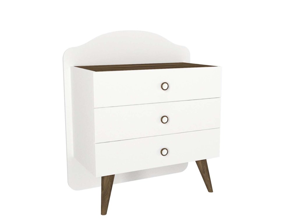 Komoda LORA se vyznačuje elegantním bílým provedením, které snadno zapadne do jakéhokoliv interiéru. S třemi prostornými zásuvkami poskytuje dostatek úložného prostoru pro vaše věci, což vám pomůže udržet váš obývací pokoj uspořádaný a čistý.