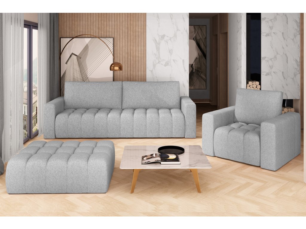 Sedací souprava LOSIKA vás zaujme svou elegancí a stylovým provedením. Tato moderní sestava se skládá ze tří atraktivních prvků, kterými jsou: pohovka, křeslo a taburetka.