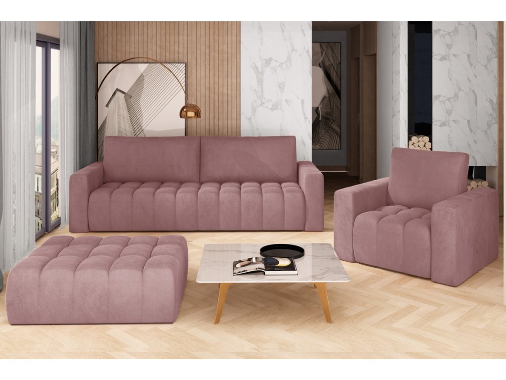 Sedací souprava LOSIKA vás zaujme svou elegancí a stylovým provedením. Tato moderní sestava se skládá ze tří atraktivních prvků, kterými jsou: pohovka, křeslo a taburetka.