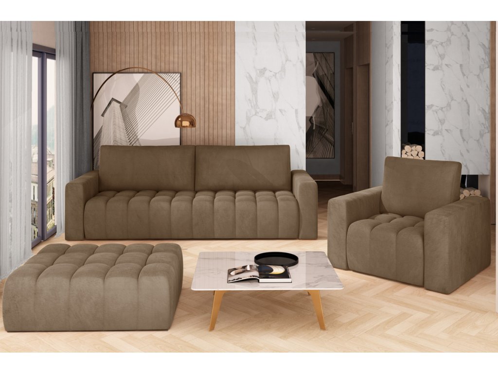 Sedací souprava LOSIKA vás zaujme svou elegancí a stylovým provedením. Tato moderní sestava se skládá ze tří atraktivních prvků, kterými jsou: pohovka, křeslo a taburetka.
