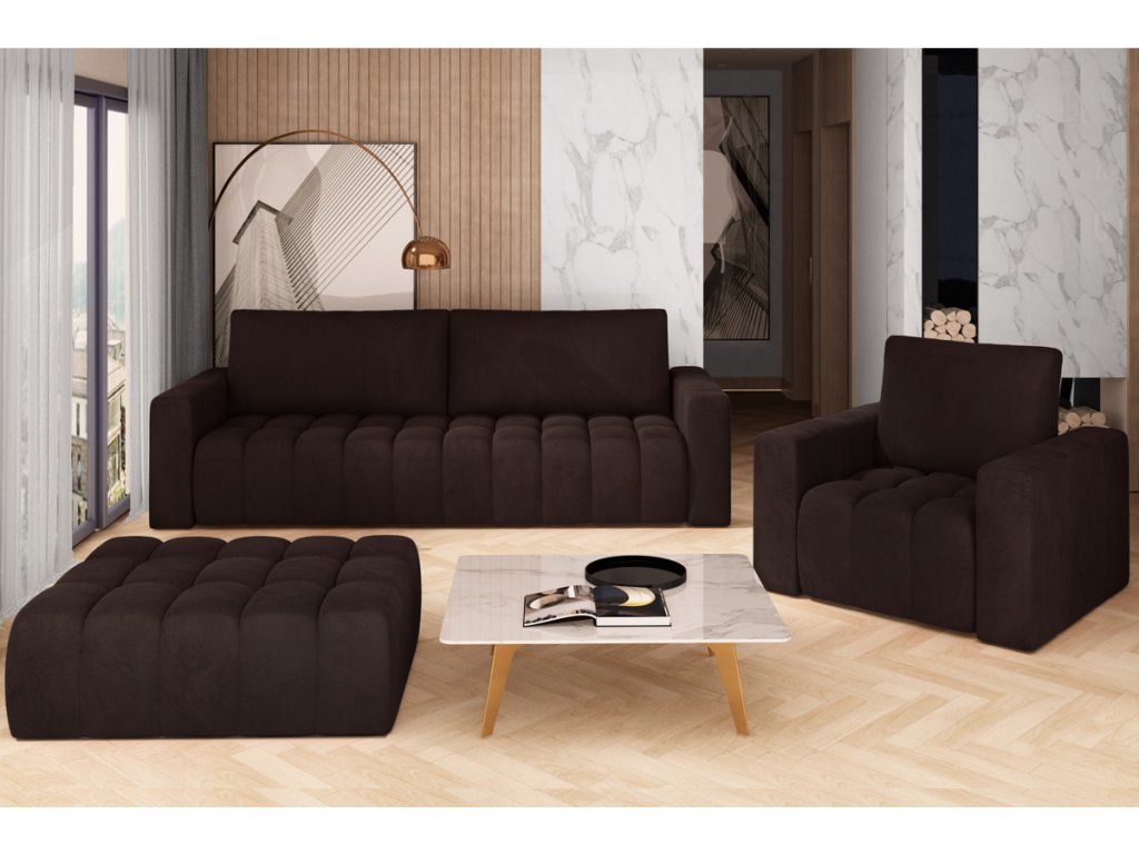 Sedací souprava LOSIKA vás zaujme svou elegancí a stylovým provedením. Tato moderní sestava se skládá ze tří atraktivních prvků, kterými jsou: pohovka, křeslo a taburetka.