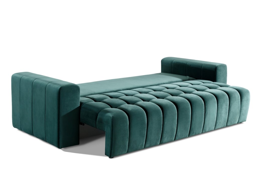 Pohovka je vyplněna kvalitní HR pěnou v kombinaci s PUR pěnou o hustotě T2540. Disponuje praktickým úložným prostorem. Je také rozkládací. Spací plocha: 195 x 125 cm. Je vhodná pro příležitostné spaní.