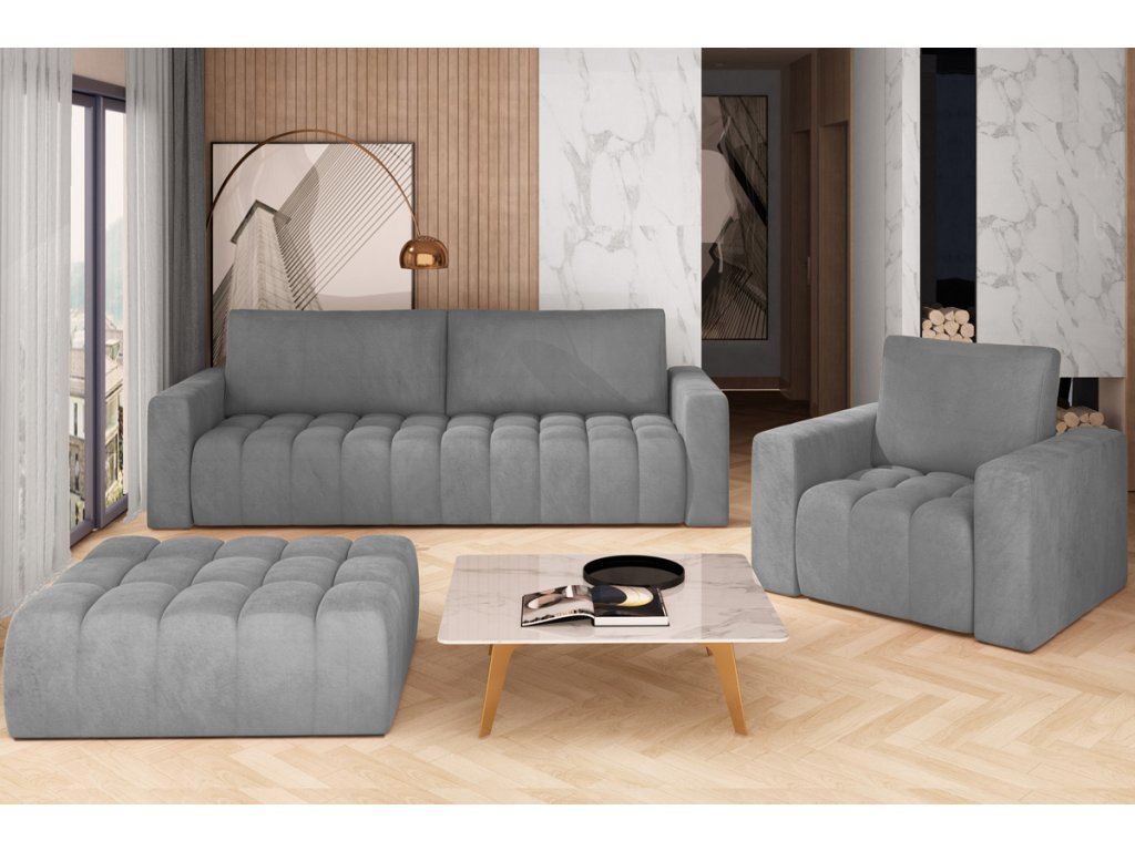 Sedací souprava LOSIKA vás zaujme svou elegancí a stylovým provedením. Tato moderní sestava se skládá ze tří atraktivních prvků, kterými jsou: pohovka, křeslo a taburetka.