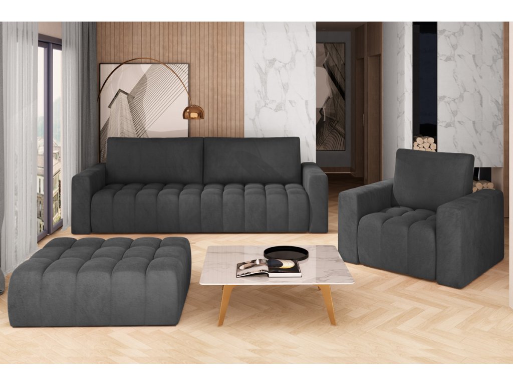Sedací souprava LOSIKA vás zaujme svou elegancí a stylovým provedením. Tato moderní sestava se skládá ze tří atraktivních prvků, kterými jsou: pohovka, křeslo a taburetka.