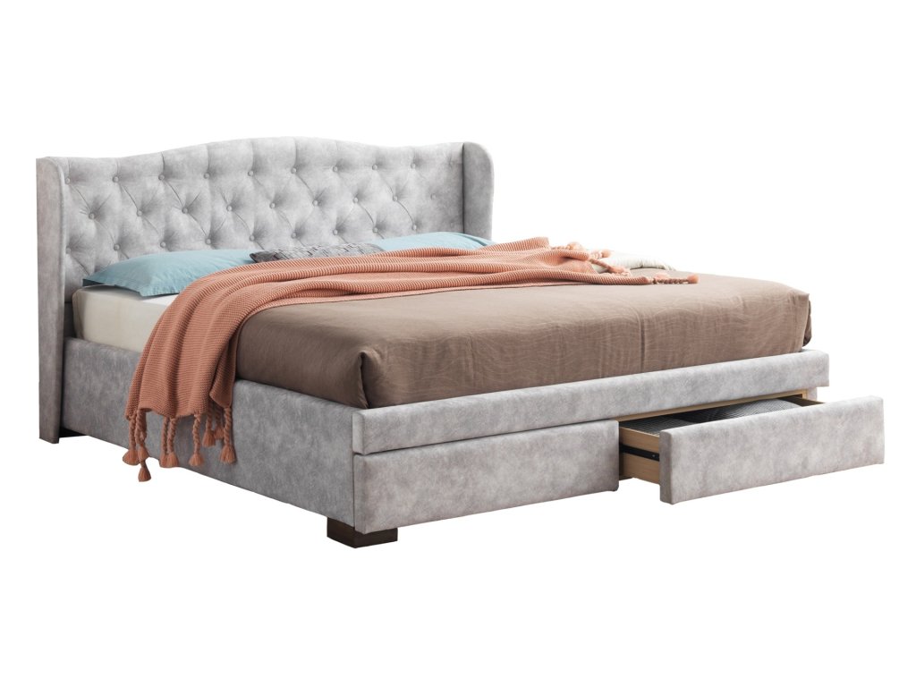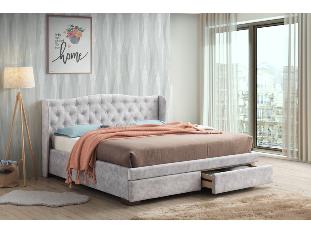 LOTOS je celočalouněná postel s oblými liniemi, vhodná do každé ložnice. Vysoké záhlaví je ideální pro podporu páteře a hlavy. při večerním čtení knihy. Knoflíky vytvářejí efektní vzor, který je dominantním prvkem této postele. Oceníte praktické šuplíky pro odkládání různých předmětů či prádla. Zajímavé jsou také boční stěny záhlaví, které tvoří zadní nohy postele. Konstrukce postele je potažena látkou ve světle šedé barvě. Nevýrazné široké nožičky jsou z masivu, v barvě tmavý ořech. Součástí postele je také rošt. Matraci je třeba doobjednat si. Vybrat si můžete také z naší bohaté nabídky. Doporučujeme rozměr 180 x 200 nebo 2 ks o rozměru 90 x 200 cm. Výška roštu od země je 36,5 cm. Rozměry (š/v/h): 199,5 x 114,5/40,5 x 212 cm. Dodáváme v demontu.Doplňkové parametry