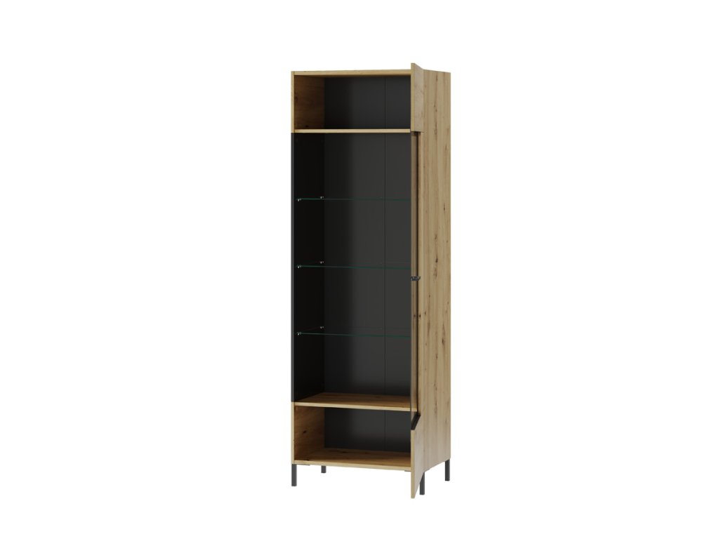 Vitrína je jednodvéřová, prosklená. Otevírá se do pravé strany. Uvnitř se nachází 5 polic, z toho 3 jsou prosklené. Lze si k ní dokoupit LED osvětlení, které není v ceně.