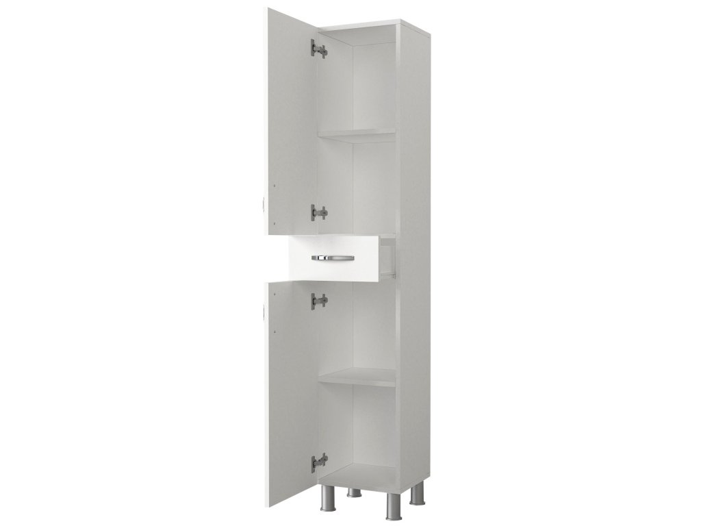 Elegantní a minimalistický design naší koupelnové skříňky dodá každému koupelnovému dekoru nádech sofistikovanosti. Jeho bílá barva se bez námahy hodí k jakémukoli barevnému schématu a vytváří svěží a příjemnou atmosféru.