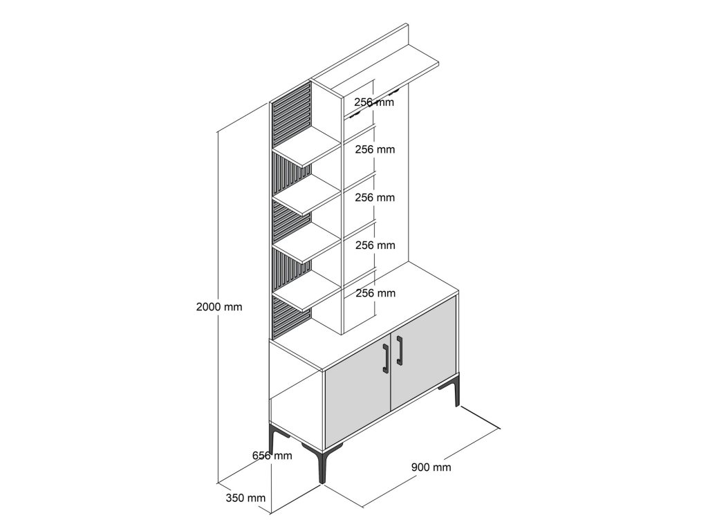S velkorysou šířkou 90 cm a výškou 200 cm poskytuje tento stojan do předsíně dostatek úložného prostoru pro vaše věci. Police mají výšku 25,6 cm, což vám umožní úhledně vystavit vaše oblíbené dekorační předměty nebo uložit nezbytnosti, jako jsou boty, tašky a klobouky. Možnost upevnění na zeď zajišťuje stabilitu a bezpečnost.