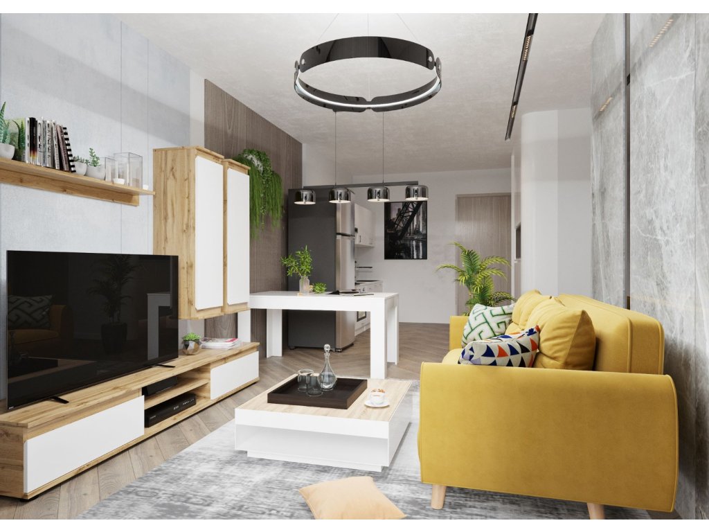 LUSSY 175 obývací stěna, dub tahoe/ bílá