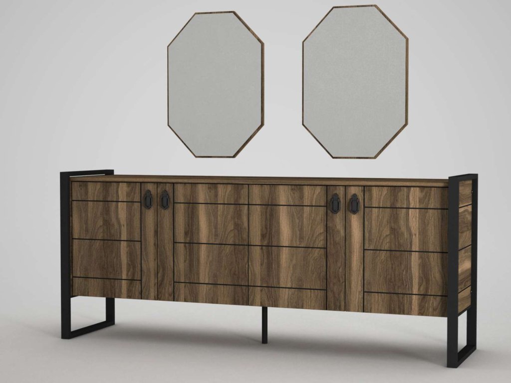 LUST široká komoda s nástěnným zrcadlem, ořech