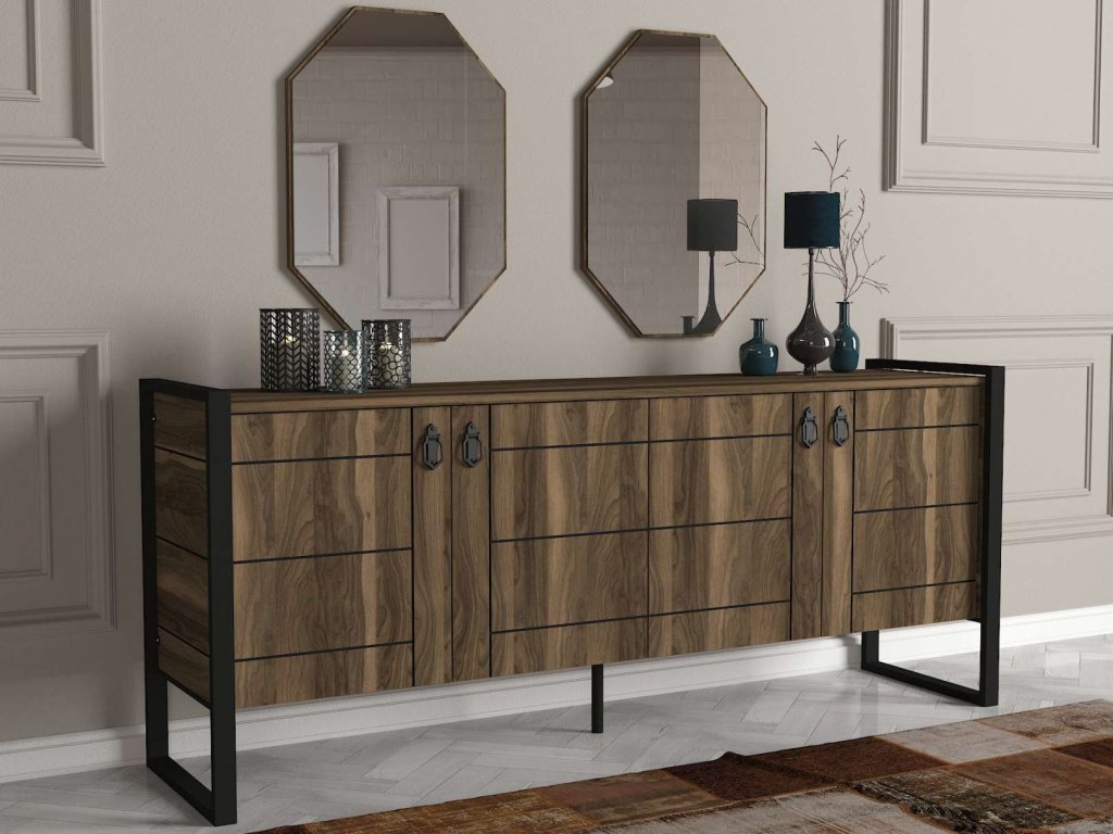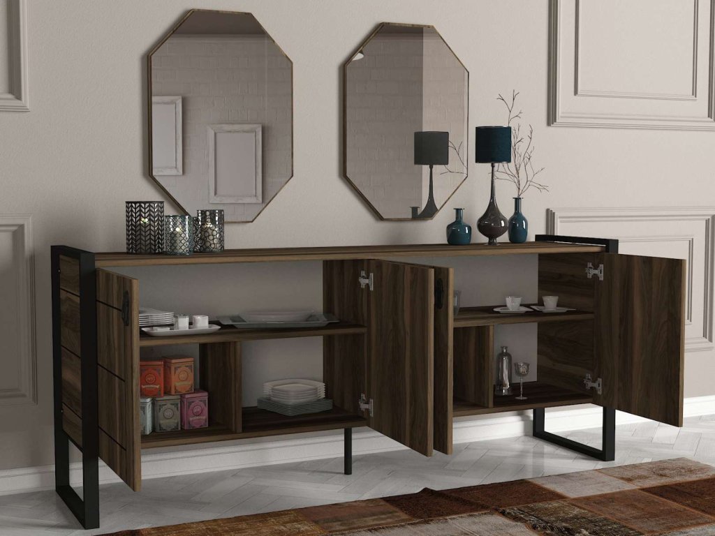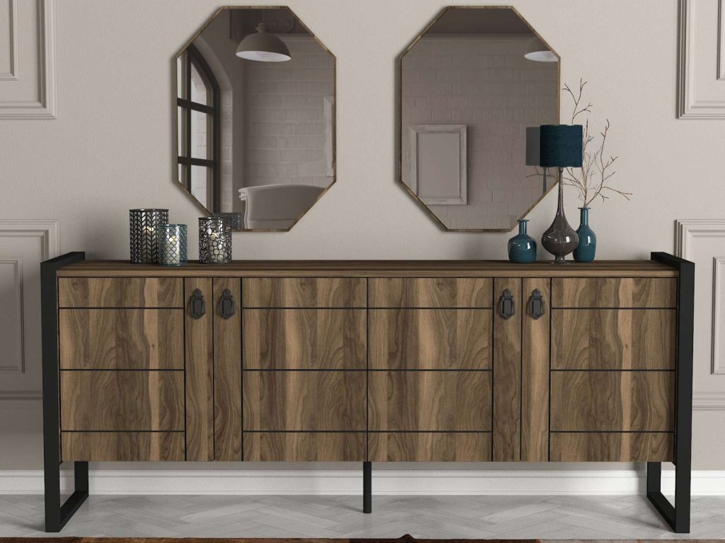 Komoda LUST je vyrobena z kvalitního LTD materiálu, kovu a skla s tloušťkou 18 mm, což zajišťuje její pevnost a dlouhou životnost. Elegantní ořechová barva dodává komodě moderní a sofistikovaný vzhled, který se hodí do jakéhokoliv interiéru. Komoda je vybavena čtyřmi dvířky, které poskytují dostatek úložného prostoru pro vaše potřeby.