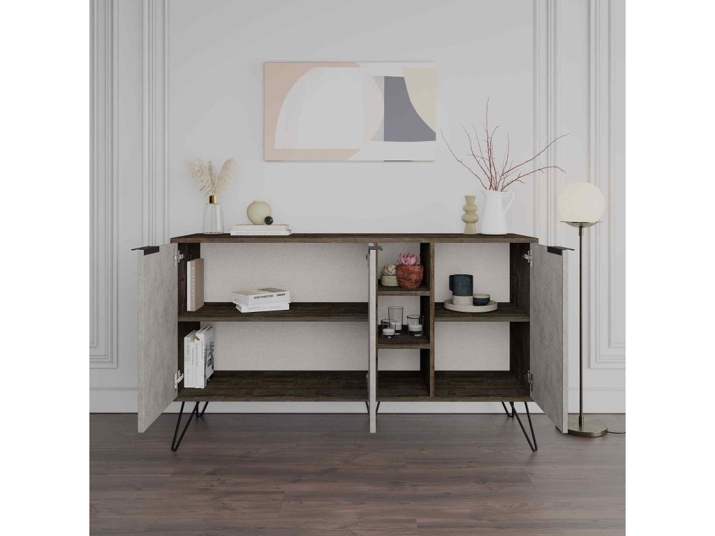 - Vybavení: Tři plná dvířka a praktický regálek pro optimální úložné řešení.