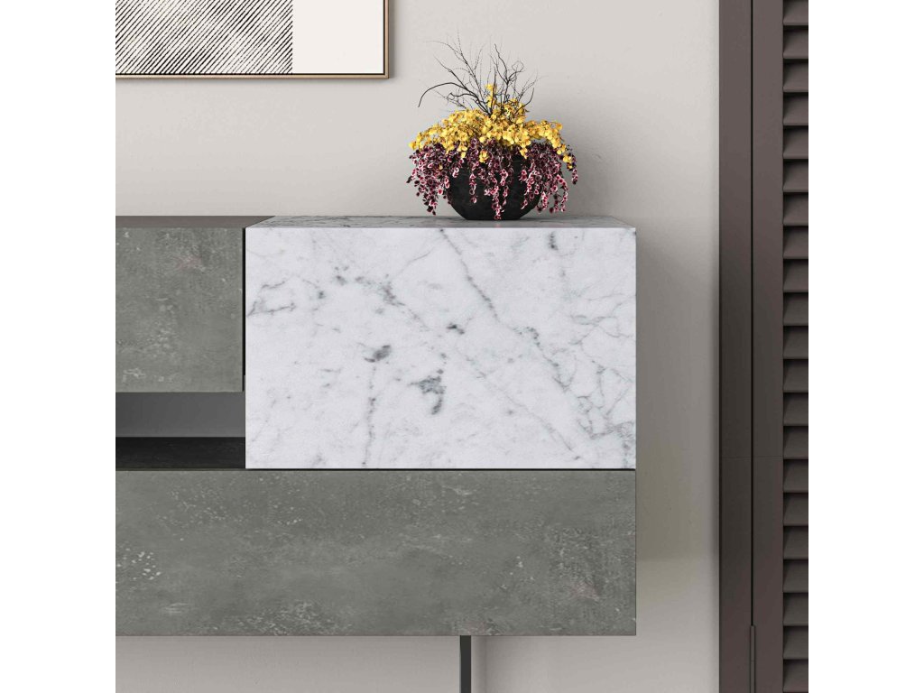 Luxusní konzolový stolek LUCIA, retro šedá / bílý Carrara