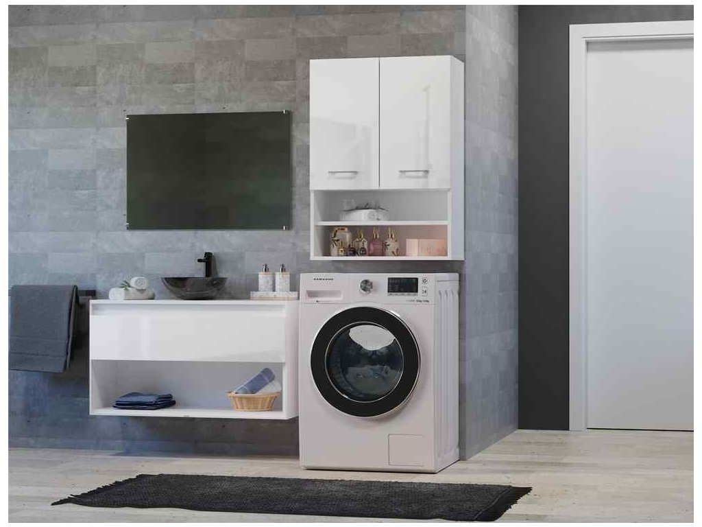 Tato skříňka, vyrobená z odolného materiálu LTD, je navržena pro dlouhodobou výdrž a snadnou údržbu. S rozměry 90 x 64 x 30 cm je ideální pro využití v menších koupelnách nebo jako doplněk k již stávajícím prvkům. Lesklý bílý dekor poskytuje luxusní vzhled, který se snadno kombinuje s různými styly interiérů.