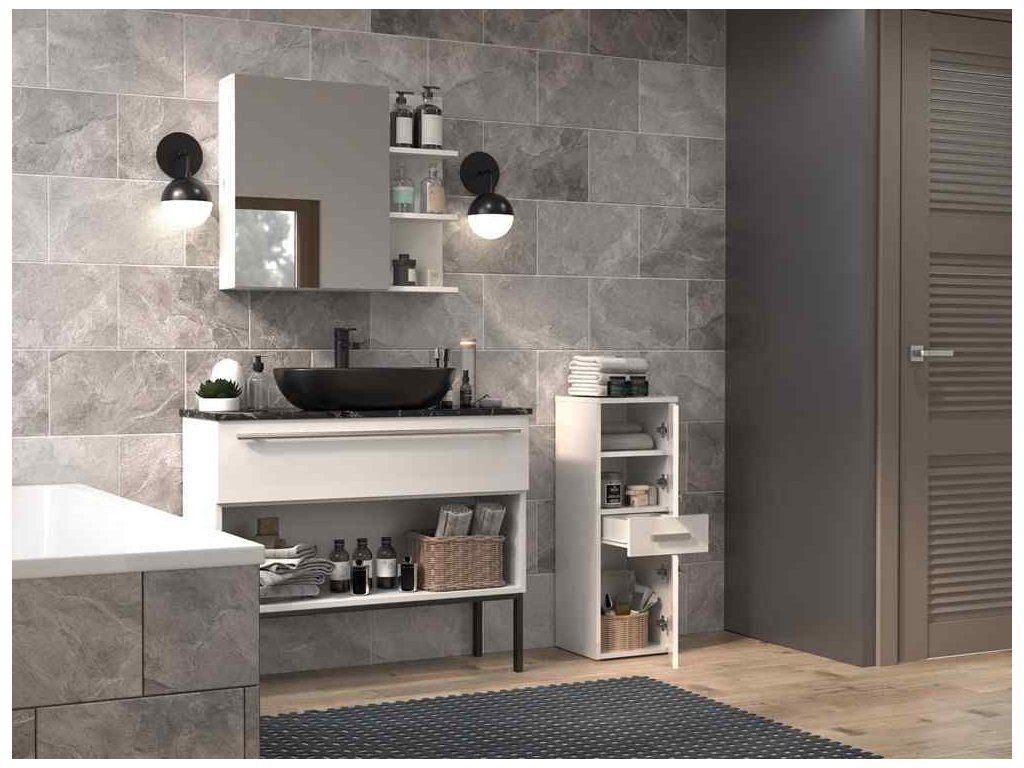 Tato koupelnová skříňka je vyrobena z odolného materiálu LTD a má nádhernou bílou lesklou barvu, která dodá vaší koupelně sofistikovaný vzhled. Je vybavena dvěma plnými dveřmi a jednou zásuvkou, což vám umožní uspořádat a uložit vaše koupelnové potřeby tak, jak vám nejlépe vyhovuje.