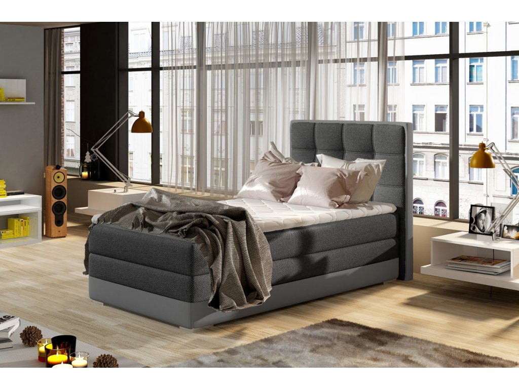 Postel BONAMI vás zaujme svým výjimečným vzhledem. Potěší i náročnější uživatele. Je vhodná do moderních dětských pokojů či ložnic. Postel je zajímavá svým vysokým čelem. Je celá čalouněná látkou Inari 96 černé barvy a ekokůží Soft 29 v černém barevném provedení. Spací plocha je vyplněna bonelovými pružinami a kvalitní PUR pěnou. Disponuje praktickým úložným prostorem. Otevírání úložného prostoru pravé (viz. foto). V naší nabídce naleznete i levé otevírání úložného prostoru postele. Rozměry postele (š,v,h): 95 x 60/118 x 205 cm. Matrace o velikosti 90 x 200 cm je v ceně postele. Dodáváme v demontovaném stavu.Doplňkové parametry