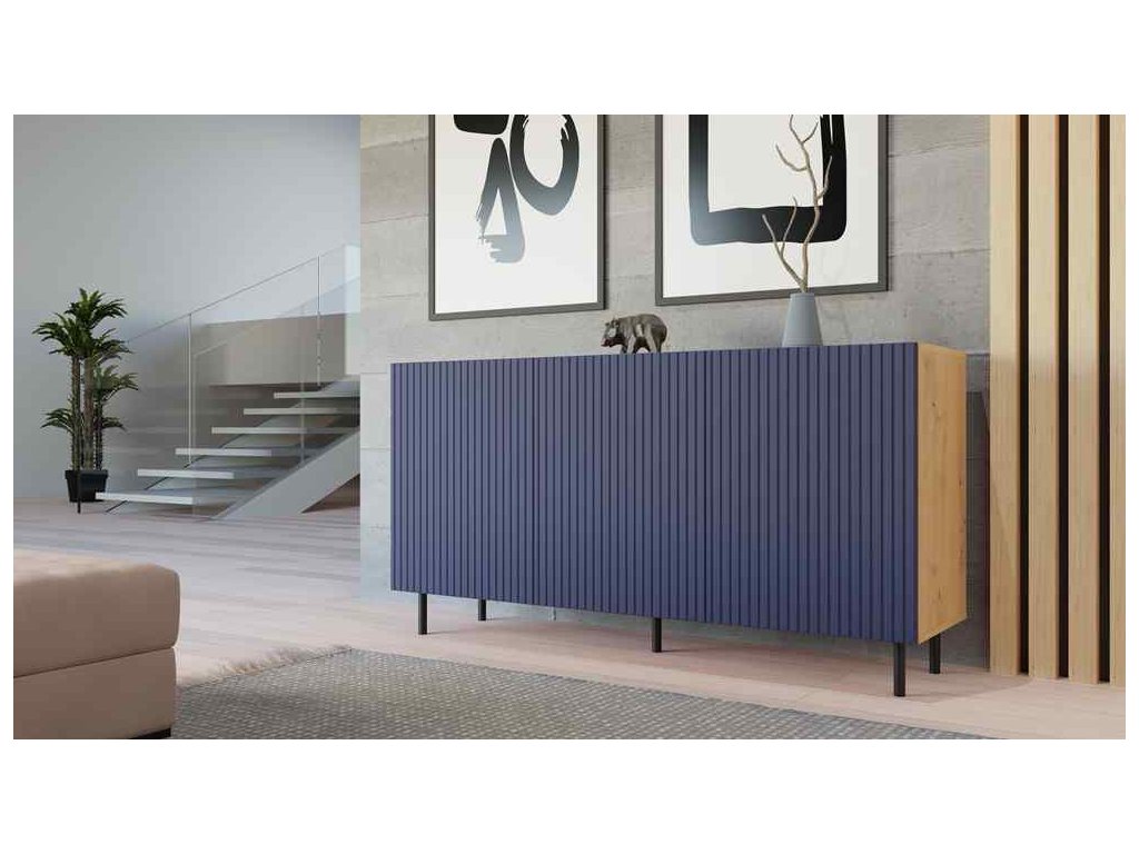 S rozměry 78 x 150 x 40 cm, nabízí KAMA dostatek úložného prostoru, aniž by zbytečně zabírala místo. Kombinace dub Artisan a granátové barvy přidává komodě jedinečný a výrazný charakter, který rozjasní každý interiér.