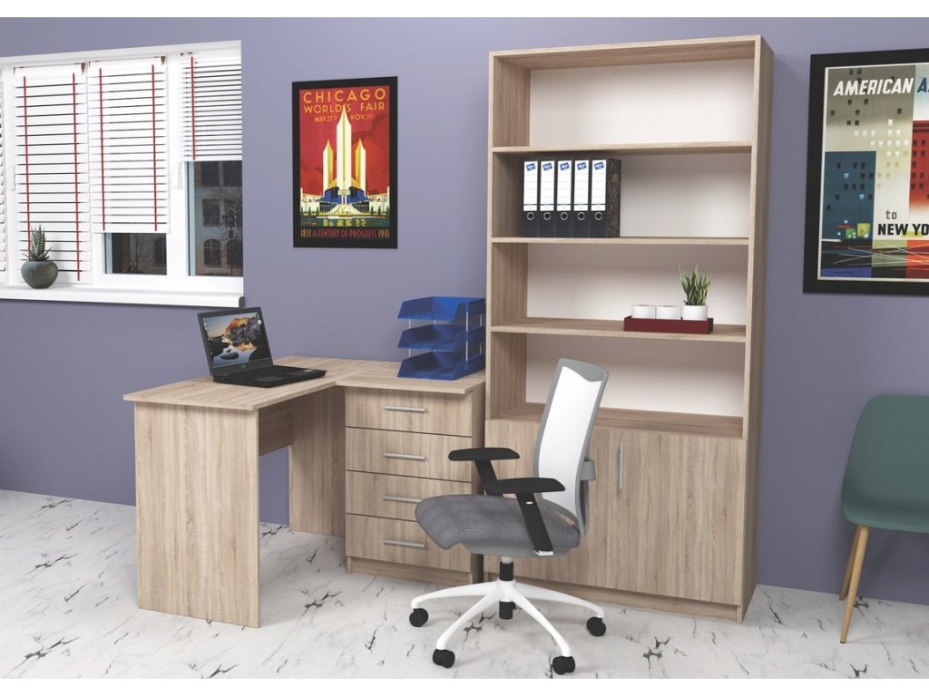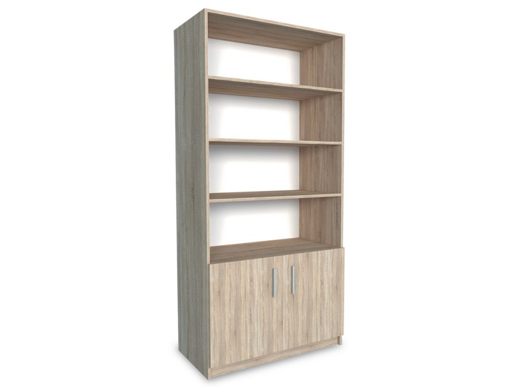 Regálovou skříň MADAL Vám nabízíme ve velmi příznivé ceně. Její odkládací prostor je kombinován. V horní části naleznete otevřené poličky, spodní část má uzavřený prostor za dvířky. Tento nábytek je vyroben z kvalitní LTD desky, která není náročná na údržbu. Barevné provedení je ve stále žádaném odstínu dub sonoma. Úchyty jsou ve stříbrné barvě. Rozměry (v/š/h): 200 x 90 x 45 cm. MADAL je prakticky řešený nábytek, ideální pro zařízení pracovny či kanceláře. Nabízí několik prvků, jejichž kombinací si vytvoříte ideální sestavu dle Vašich potřeb a požadavků. Dodáváme v demontu. Barva na obrázku může mít jiný odstín než reálný materiál.