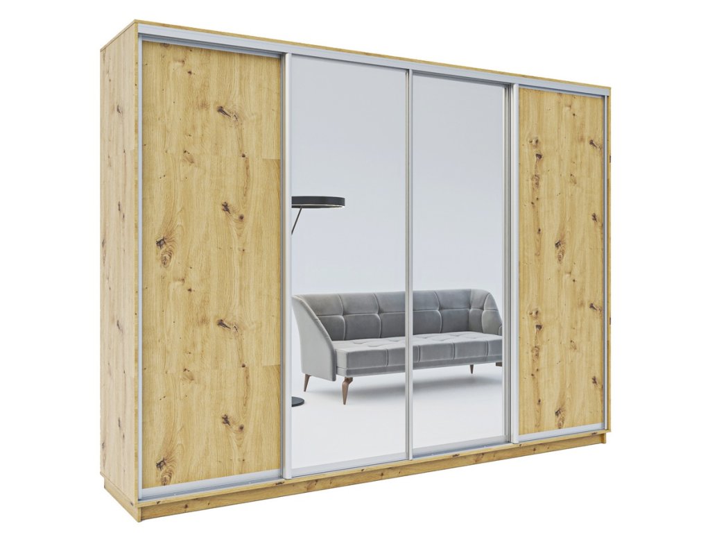 MAGMA 280 je velká šatní skříň se 4 posuvnými dveřmi. Tuto skříň Vám nabízíme v žádaném barevném provedení dub Artisan. Přední dveřní část je v kombinaci dub sonoma (2 dveře) a zrcadlo (2 dveře).