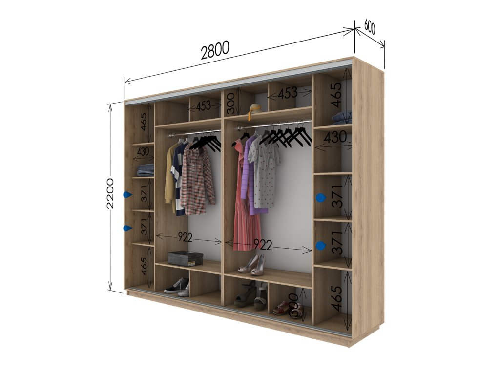 MAGMA 280 je velká šatní skříň se 4 posuvnými dveřmi. Tuto skříň Vám nabízíme v žádaném barevném provedení dub sonoma. Přední dveřní část je v kombinaci dub sonoma (2 dveře) a zrcadlo (2 dveře). Skříň je efektně propojena s úchyty a kováním ve stříbrné barvě/aluminium. Výjimečnost skříně je v její netypické výšce až 220 cm, čímž se zajistí větší úložný prostor. Rozměry úložných částí si můžete prohlédnout na fotce. Skříň je členěna na policovou a závěsnou část se 2 závěsnými tyčemi. Korpus skříně je vyroben z kvalitní LTD desky. V naší nabídce naleznete také skříň MAGMA v bílé barvě. Pro komfortnější rozdělení odkládacího prostoru máte možnost dokoupit sadu 2 šuplíků (viz doporučujeme). Možnost jejich umístění vidíte na přiloženém nákresu. Rozměry v/š/h: 220 x 280 x 60 cm. Dodáváme v demontu.