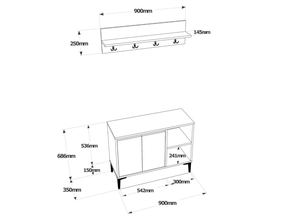 Předsíňová sestava vhodná do předsíně. Kompaktní rozměry, praktické vybavení a odolný materiál.