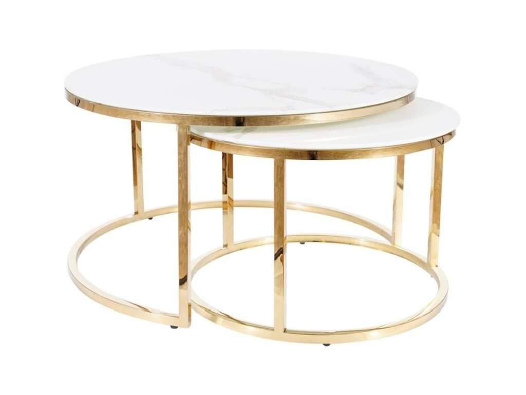 MALLA sada konferenčních stolků, mramor / zlatá