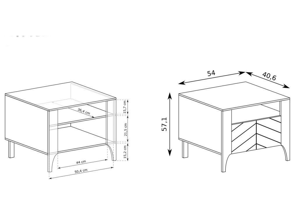 Stolek podepírají štíhlé nožky MDF o výšce 15 cm, které zajišťují nejen stabilitu, ale i lehkost vzhledu a snadnější úklid pod nábytkem. Odolné laminované desky s ABS hranami navíc přispívají k dlouhé životnosti.
