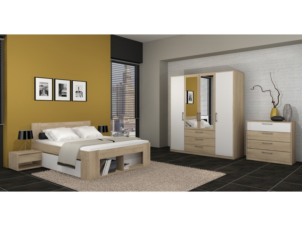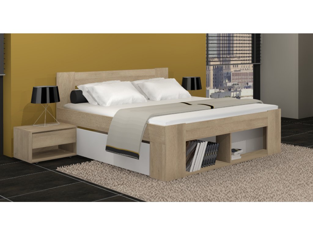 Postel EMILY 160 kromě výhodné ceny a moderního provedení zaujme praktickým řešením úložného prostoru. Postel má z obou stran zásuvky a výsuvné noční stolky, které lze jednoduše zasunout pod postel. Vpředu je postel vytvarována tak, že prostor pod korpusem lze využít jako odkládací prostor. Postel je vyrobena z LTD, které se jednoduše udržuje. Zajímavé barevné provedení dub sonoma v kombinaci s bílou barvou. Matrace a ani rošt není v ceně, je třeba je dokoupit, vhodná velikost 160x200 cm nebo dva 80 x 200 cm. Rozměr (v/š/h) 86 x 166 x 205 cm. Lišty, na které jde rošt jsou ve výšce 37 cm od země. Dodáváme v demontu. Ložnicovém sektoru EMILY si můžete vybrat manželskou postel s nočními stolky, komody či šatní skříň.Doplňkové parametry