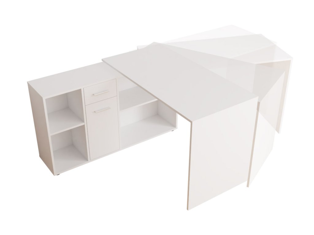 Barevné provedení stolu je v barvě bílá matná. Úchytky jsou ve stříbrné barvě. Tento psací stůl ocení každý, kdo má rád pohodlí při práci.