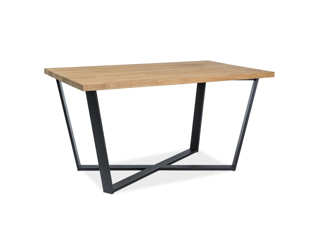 Moderní designový velký jídelní stůl. Stůl je vhodný do interiérů zařízených ve stylu loft. Moderní konstrukce stolu je kovová černá, vrchní deska je vyrobena z přírodního dubového dřeva. Rozměry (výška/šířka/hloubka v cm): 75/150/90. Stůl je dostupný jak ve větším rozměru, tak z přírodní dýhy. Dodáváme v demontovaném stavu.Doplňkové parametry