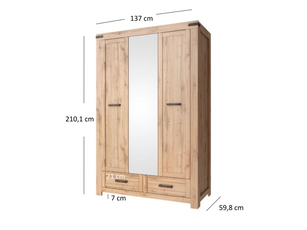 - Šatní skříň 3D2S (ŠxHxV): 137 x 59,8 x 210,1 cm